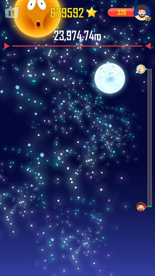 即使人掉下来没接触,也不会游戏结束,可以继续向上抛出。这个游戏是全球范畴的休闲手游,有着绝对简单的操作,和无厘头乐趣,究竟能不能将人抛出银河系呢,来试试看