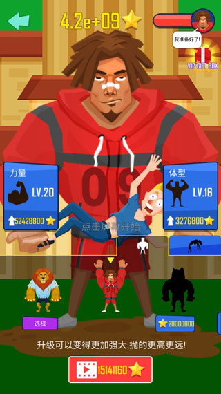 向上抛的时候高度达到一定的距离就会有特色的奖励进行领取,慢慢解锁更多的大力士