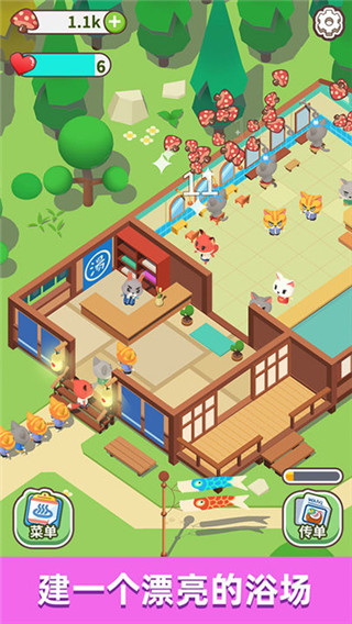 1、一款非常出色的休闲模拟经营游戏,游戏中有着各种各样可爱的小动物来到这里泡澡
