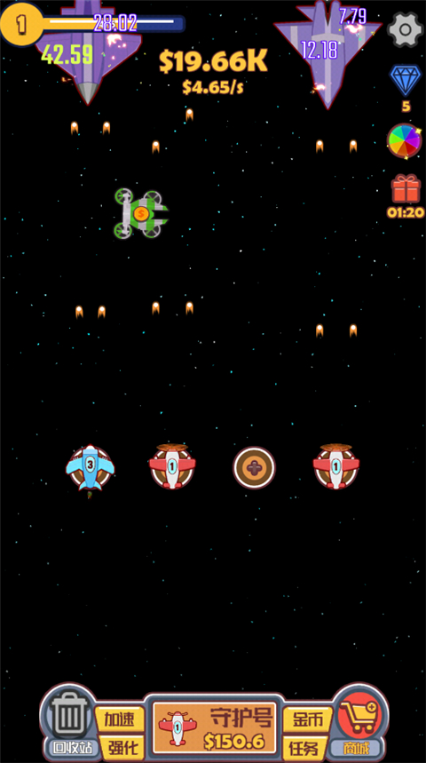 一款将合成玩法和飞行射击完美融合的射击冒险游戏,玩家需要利用自己的战机消灭不断出现的敌人,轻松休闲的放置类玩法,完全不用你动手操控飞机,飞机就能自动最敌人发起攻击,你要做的就是不断的升级强化你的战机,不要让敌人冲破你的火力网,感兴趣的小伙伴可千万不要错过哦
