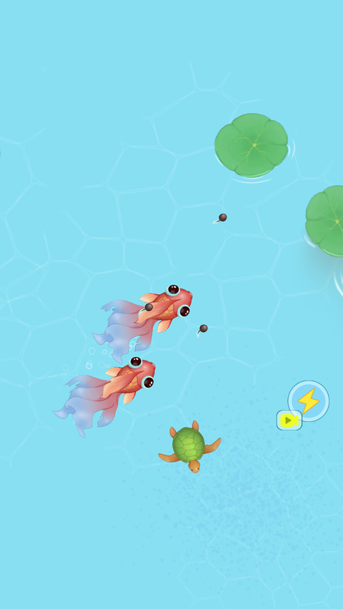小青蛙吃小蝌蚪,周围有小蝌蚪,将两只小青蛙组合成一只小青蛙 ,当面对更强的对手时,例如鲤鱼或鲨鱼,你必须在远处避开它们