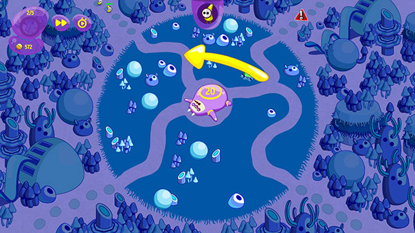在睡意侵袭中,玩家可以通过旋转中央战场(圆圈以内)来控制不同强度的入侵者进入不同防御强度的道路之中,游戏也因此变得更加考验玩家的大局观。当玩家觉得自己的反应跟不上游戏的发展时还可以通过点击暂停按钮让入侵者停止前进