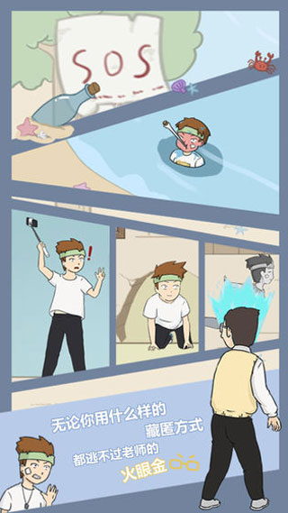 游戏以轻松幽默的校园逃课为主题,结合充满童年回忆的画面和道具,既唤起玩家共鸣又带来欢乐体验。解谜元素的加入增添了挑战性,让休闲玩法不失动脑乐趣。