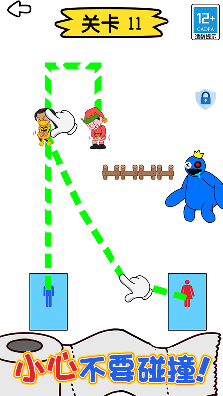 这款游戏的玩法非常的新颖,在这款游戏中可以充分展示自己的思维来过关,但是你在通关的时候一定要小心谨慎,不然就会落入陷阱从而通关失败