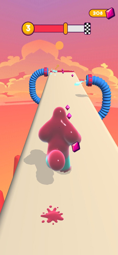 一款画风奇特的跑酷游戏,这里玩家操控粘液人一路前进冲锋,碰到黏液就自动收取变成身体一一部分从而增大体积,碰到障碍又会减速丢掉一些粘液,所以玩家需要自己把握粘液大小