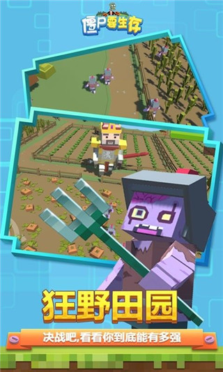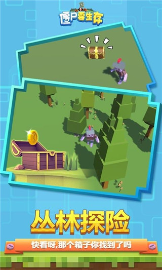···经典沙盒场景打造,游戏画面非常精致,简单灵活的操作玩法,在僵尸要生存中,玩家需要搜集装备,消灭其他玩家,让自己生存下去
