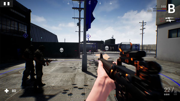 2、玩家扮演控制一名持枪战斗人员,选择自己喜好武器,在有限的时间里消灭敌人;