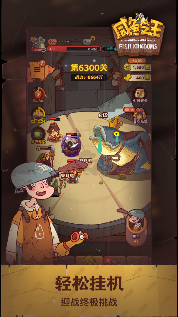 咸鱼之王国际版(Fish Kingdoms)是一款充满欢乐的放置策略手游,以三国为背景,独特地将经典英雄化身为搞怪的咸鱼角色。玩家在游戏中将成为阿咸,通过指挥厨房中的咸鱼们抵御敌人入侵,运用智慧合理布局来组建强大的武将阵容。游戏界面简洁易懂,即使是新手玩家也能轻松上手,前期几乎可以轻松通关。随着战斗的深入,玩家需要不断收集和升级各种咸鱼武将,提升队伍实力。丰富的玩法包括海量关卡、塔防挑战以及竞技场对战,保证了游戏的趣味性与耐玩性。如果你喜欢休闲又富有策略性的游戏,赶快下载《咸鱼之王国际版》,开启这场咸鱼王国的冒险旅程吧!