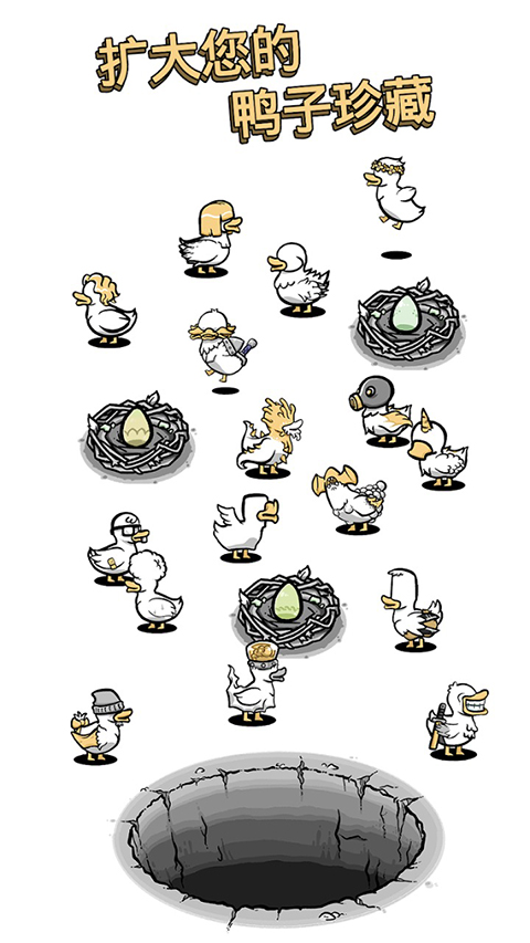1、你可在鸭子的全新世界中,孵化出更加厉害的鸭子,鸭子数量越多,你的分数就越高