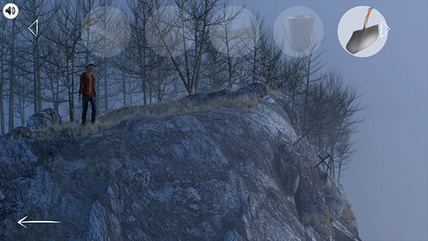 ●在水井底部找到铲子并打开图形密码门,进门之后就可以到达悬崖旁边拿到铁锹,返回X标记点用铲子挖取撬棍;
