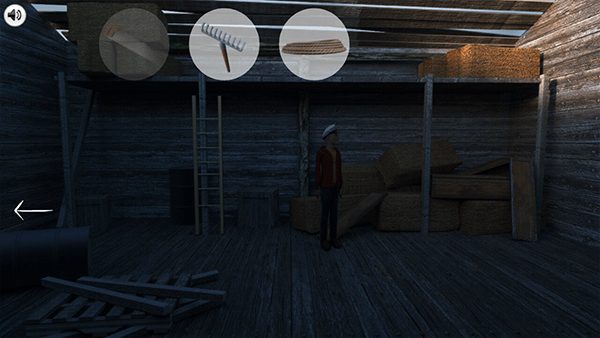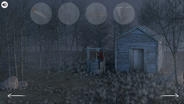 ●使用锯子脱身之后,进到屋子之中寻找到绳子和耙子,用耙子将树上的水桶成功取下来,在水井旁边用绳子和桶到达井底;