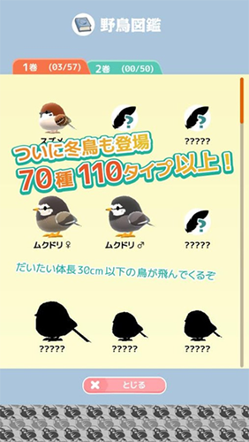 本次加上冬鸟,小鸟数量翻倍,总计有80多种140个类型的小鸟等着你观察。