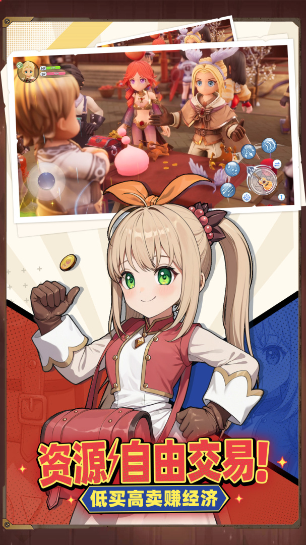 游戏内资源全部通过探索与生产获取,支持自由交易系统。玩家可以战斗刷宝、采集资源、制作道具,甚至建立自己的商业帝国,实现自产自销、以物易物的开放经济环境。