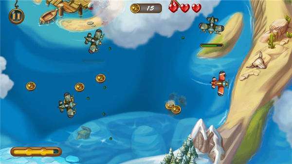 2、关卡多样,一共50个左右的小关卡等你来玩,不同关卡能收集到不同的稀有道具,让你体验不一样的空战游戏