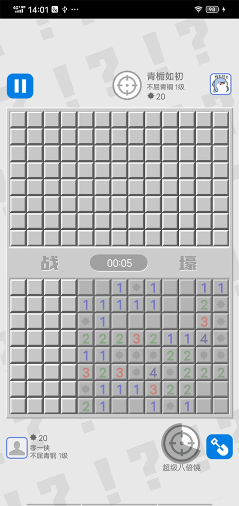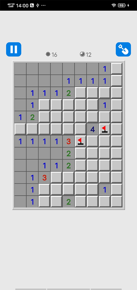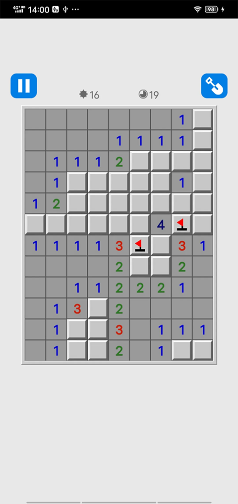 3、在游戏中点击方格,通过数字的提示来寻找没有雷的区域,只要玩家们能够将所有没有雷的区域找到就能顺利通关。