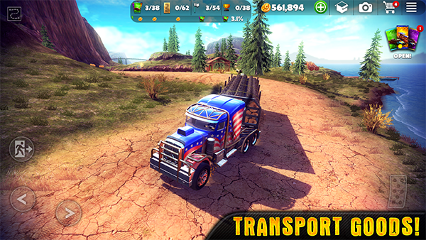 从游戏中的界面来看,除了可以开越野车,还可以使用货车来运输货物,游戏中提供了多种操作方式,有常规的四个方向键,还有刹车、加速等,其他的特定操作按键不是每一个赛车都有的,玩家需要根据自己的车型去使用它们,最终的目的就是努力赚金币,通过各种任务、各种玩法活动,达到你的目的