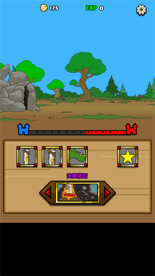 原始人别嚣张是一款休闲卡通风格的策略对战游戏,它的玩法就是红蓝双方相互派兵攻击对方,谁先摧毁对方的基地谁就是胜利者,而且这里还可以使用各种让你脑洞大开的大招。感兴趣的朋友快来体验吧