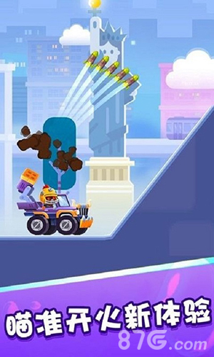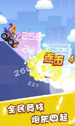 游戏将战车建造与实时射击结合,手指滑动即可完成移动与攻击。每局2分钟的快节奏设计适配碎片时间,挂机收益系统解放操作压力,在卡通画风中营造轻松竞技乐趣。
