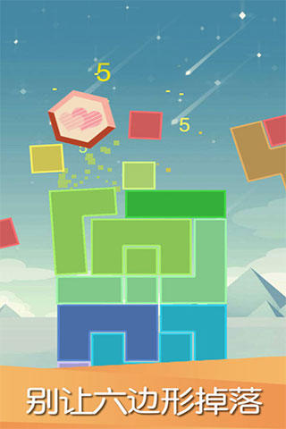听起来很容易,但当六角形块开始滚动,会动摇整个方块大楼。如果要追求高分,会发现并不像原来想的那么容易。如果移除砖块让塔楼倒塌,或者六角形块获得了动力而滚出屏幕,游戏结束,需要从头重新开始。