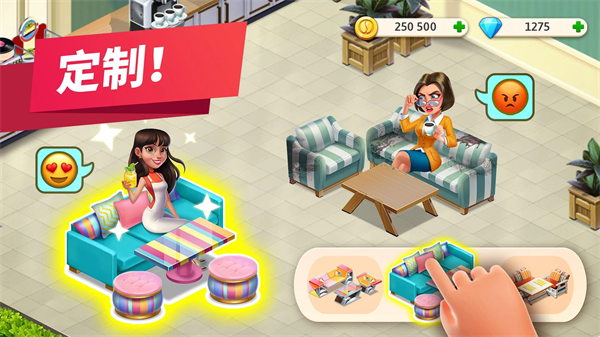 包含大量场景对话,玩家的选择会直接改变对话内容,甚至影响角色人生,为经营增添剧情互动的深度。
