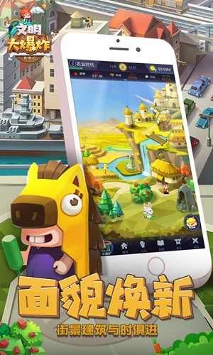 《文明大爆炸》是一款轻松休闲的模拟经营放置类游戏,它摒弃了繁琐的手动操作和昂贵的氪金培养,让玩家在闲暇之余,能够轻松享受游戏的乐趣。游戏中,玩家只需简单地点击屏幕,就能收集资源、发展文明,体验经营的乐趣。无需复杂的技能释放,也无需投入大量的时间和金钱,让玩家在轻松愉悦的氛围中,感受文明的发展与进步。快来加入《文明大爆炸》,一起享受放置类游戏的魅力吧!