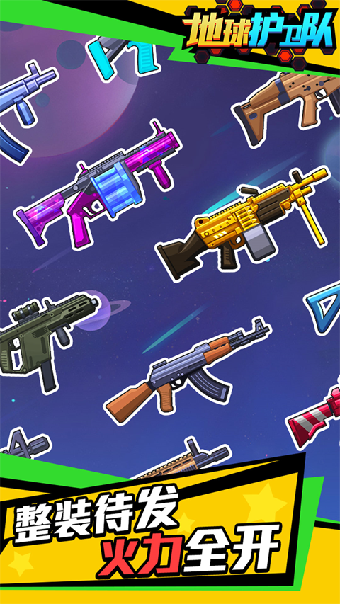 《地球护卫队》是一款全新的防守射击类游戏,游戏加入了合成玩法,让玩家能够有机会体验数十种经典武器,更有黄金加特林等你来拿!游戏画面精致,操作简单易上手,丰富的系统和玩法绝对会让玩家爱不释手,赶快来体验一下吧!