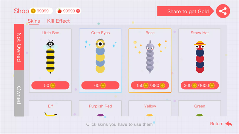 4、超Q萌清新画风让你爱不释手,源源不断的小蛇皮肤全部开放供君选择