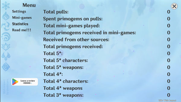 -所有图像、声音、角色名称等均由miHoYo提供并归其所有。开发商不拥有或要求所有权。此应用程序是为娱乐目的而创建的。