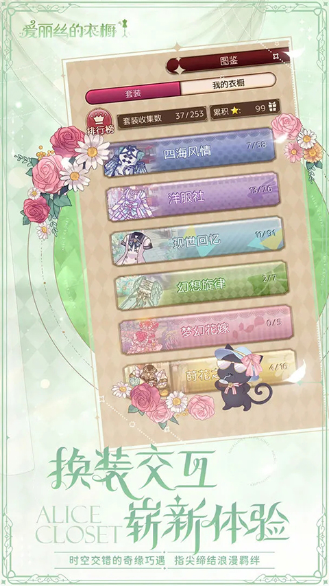 《爱丽丝的衣橱》是一款深受女性玩家喜爱的装扮游戏,它允许玩家扮演可爱的爱丽丝花灵,在充满梦幻色彩的【梦幻大陆】上展开一场别开生面的冒险。在这个游戏中,玩家可以尽情发挥自己的创意和想象力,为爱丽丝花灵打造独一无二的装扮,让她成为最耀眼的存在。