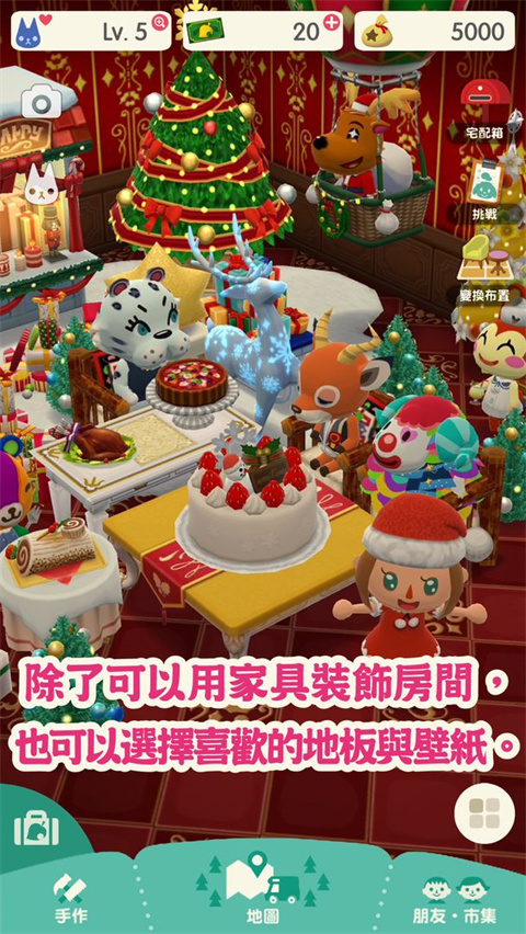 《动物之森Pocket Camp》游戏内包含各样的家具,可以收集素材来制作!同时可以买衣服,买鞋袜,买饰品和帽子,买树种和盆栽,买家具,买信纸,买壁纸地毯,买KK的CD等等。游戏内各式各样的店铺,可以完全满足你的购物欲望,快给你的乐园添加各种各样的神奇的道具吧。玩家可以自由装扮营地内的布置,一起享受属于你们的欢乐时光。