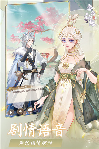 一沉浸式玄幻小说剧情故事,游戏代入感比较强,唯美场景呈现,在恋恋仙缘中,玩家将扮演主角,在体验畅快修仙的同时还可以结婚交友,情缘组队,畅玩三界