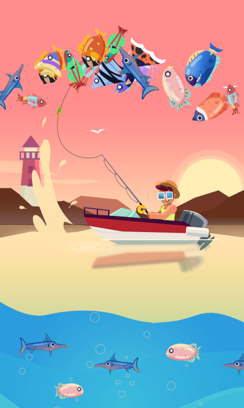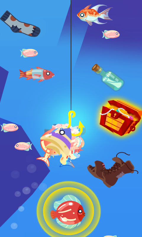 有着简约的画风以及轻松愉悦的休闲游戏氛围,游戏主要以模拟钓鱼为主要玩法。玩家需要抛下并移动鱼钩,尽可能钓上更多的鱼。而且可以用金币升级鱼竿,深入更深的海底钓鱼,层出不穷的新颖游戏元素相信会带给你非凡的游戏体验