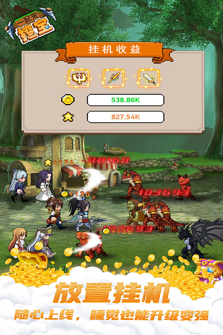 核心为全自动挂机战斗,队伍自动闯关并持续获得经验与金币,真正实现不肝不氪、离线变强的佛系体验。