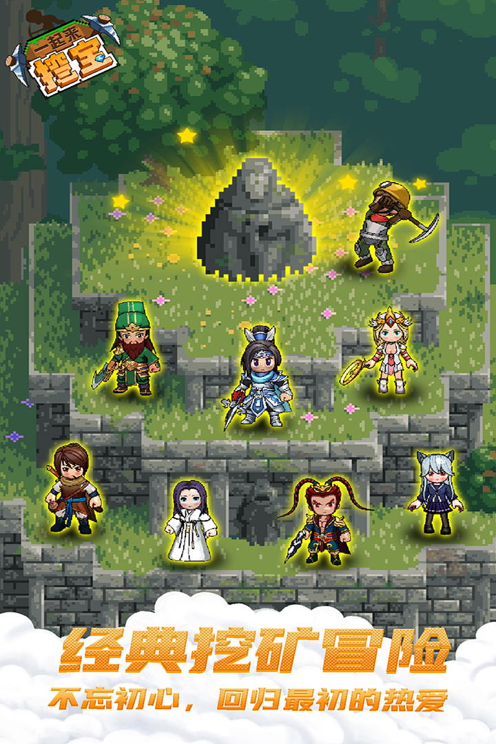 可招募关羽、张飞等三国名将作为伙伴,组成风格各异的挖宝小队,在复古画风下体验混搭的趣味与强力战斗。