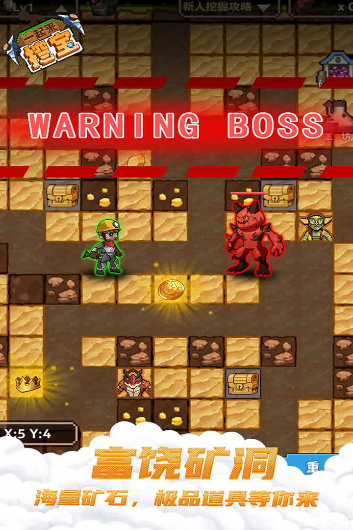 3、在一起来挖宝游戏中与形态各异的BOSS对决,考验团队协作与战斗策略,胜利后的丰厚奖励等待你的领取;
