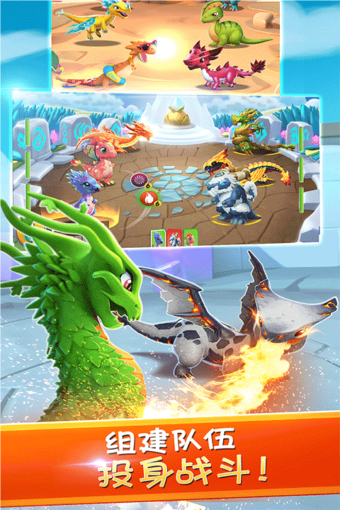 游戏提供竞技之神挑战赛等PVP内容,玩家可以组建并强化自己的龙族大军,通过策略性地搭配阵型和属性,挑战其他玩家或游戏中的敌人,成为最强骑士。