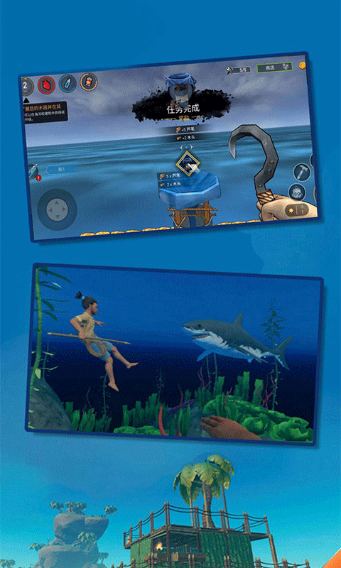 2、游戏为你的力量提供生存之道。如果你想在木筏上玩手工艺品,请冒险在木筏上生存
