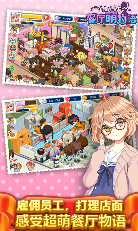 萌力全开的餐厅经营新体验!从日式女仆咖啡厅到奇幻主题餐厅,50+美食搭配千种家具随心打造。最惊喜的是近百位动漫角色任你招募,看着傲娇大小姐为你端盘子,电波系少女在后厨忙碌,这哪是经营游戏?分明是二次元爱好者的天堂!Live2D技术让每个互动都生动可爱,休息室的日常小剧场更是让人会心一笑。