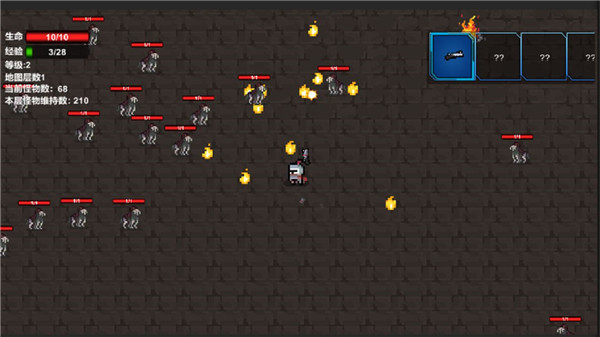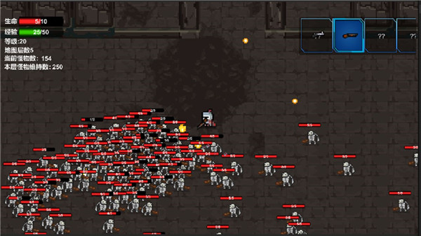 玩家将控制勇者在这个像素地牢世界之中不断地进行射击,消灭敌人,此版本游戏已被破解,消灭敌人经验翻倍,游戏玩起来简单游戏