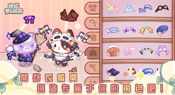 解锁漂浮岛屿场景后,可摆放过山车、喷泉等数百种装饰,打造个性化猫咪主题乐园。