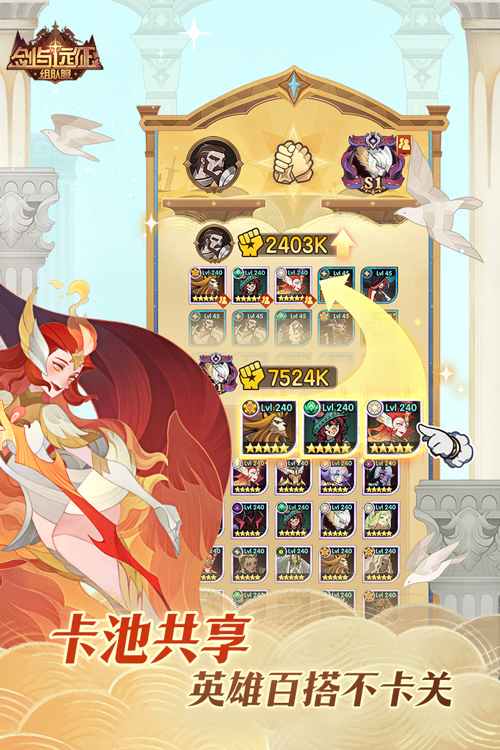 变换阵容及英雄前后排站位,真正实现跨战力通关,体验丰富策略纵深!