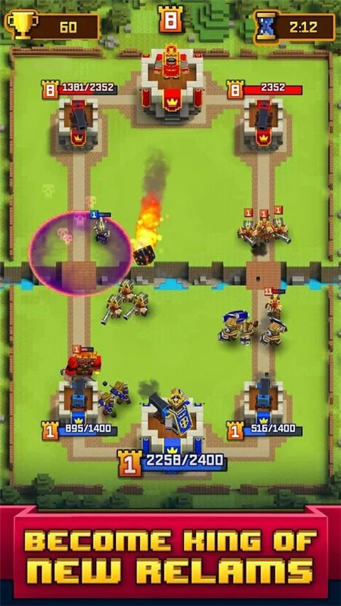 将皇室战争和像素元素相结合,别有一番风味,玩家通过卡牌收集和战术搭配组建卡组,摧毁对手的建筑就可以获得奖励,多种卡牌元素供玩家收集,玩法非常多样化