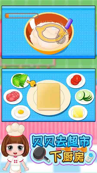 《贝贝去超市下厨房游戏》是一款专为2-5岁幼儿设计的亲子互动游戏,以真实美食食谱为基础,带领孩子们进入一个充满乐趣的厨房世界。游戏通过简单直观的操作,让孩子们在虚拟厨房中体验制作美食的过程,了解每一道菜式背后的食材与步骤。