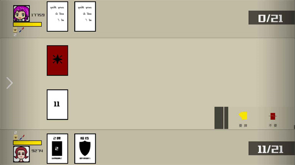 风格极简,策略卡牌对炸你系统非常有趣,游戏中数牌牌组为1---11,玩家要尽量使自己的点数尽量地靠近最大点数,但是千万不能超过,若是运气不好的话,合理利用王牌将成为关键,联机还有刺激的联机模式,感兴趣的就快来试试吧