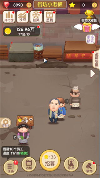 1、招募各种员工,不同的员工能力各不相同,而玩家你在这款游戏里要合理的利用这些员工的能力;