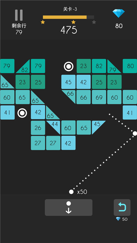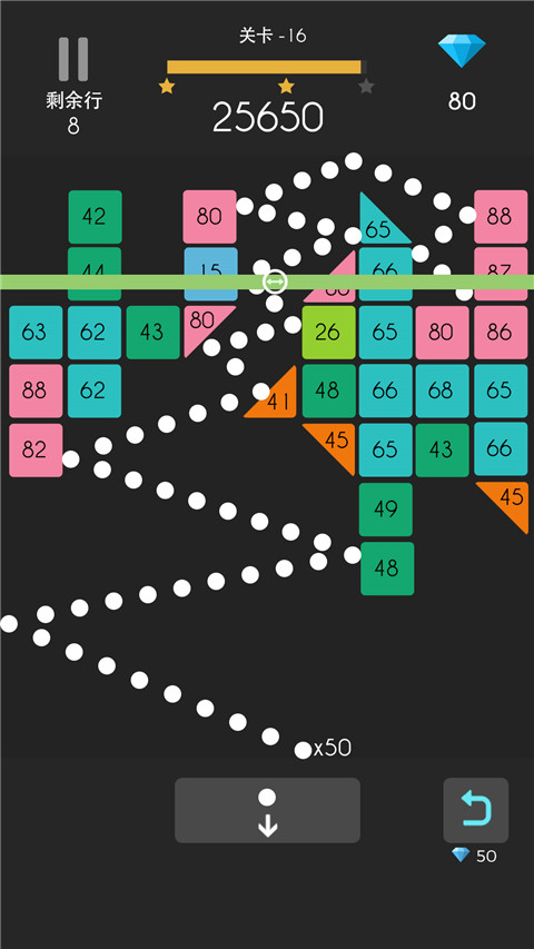 2、通过滑动自由瞄准弹射路径,球体撞击反弹持续消减方块。独创“实时回收”机制,点击即可中断发射回收小球,让你随时调整策略,掌控全场节奏;