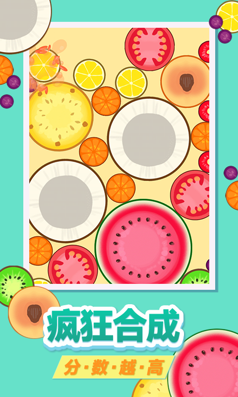 超级容易进行上手的小游戏,玩家就需要把相同的水果进行合成就行了,听起来好像兴趣不是很大的样子,但我保证绝对让你轻松上瘾,玩家需要将它们合成变得更大,但是要注意空间是有限的,要注意合理布局哦,玩法休闲解压!
